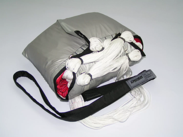 The most outstanding feature of this rescue chute is its exceptionally stable descent. It’s weight ranges have been adjusted so that maximum sink speed never exceeds 5,5 m/s – something of special importance to PPG flyers. Of course the free-flyers will appreciate comfortable sink speed as well.